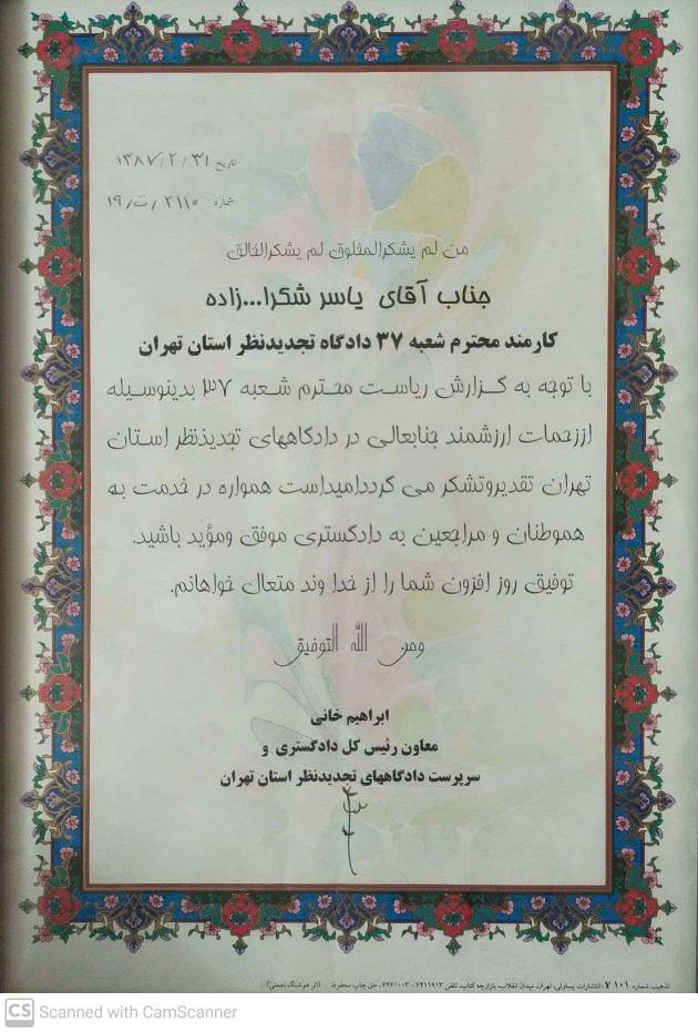 سوابق و تقدیر نامه های دریافتی از مقامات و مجموعه های مختلف که موید تخصصو افدامات اینجانب در حوزه های کاری مختلف برای هدمت رسانی به همه مردم عزیز است و می تواند گواه نیت قلبیم و پشت کار برای انجام امور حقوقی شما باشد