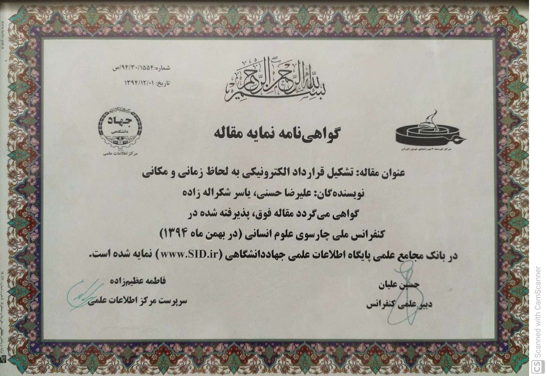 تقدیرنامه ها